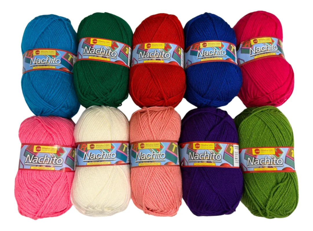 Nachito, Acrilico LHO, Ov x 100 Gr . Ideal para todo tipo de prendas , semigordo 4/7 , para tejer con dos agujas Nº 5, crochet Nº 4